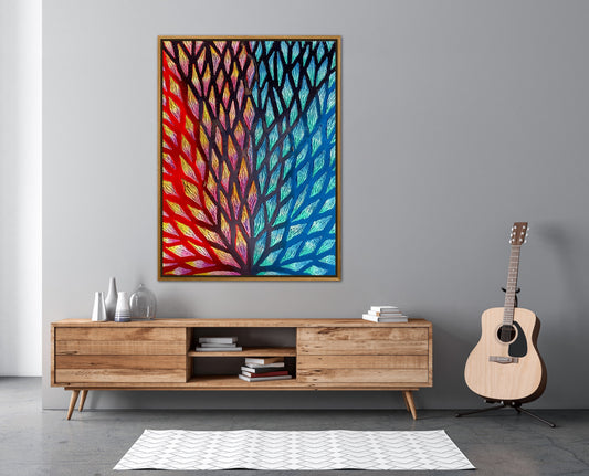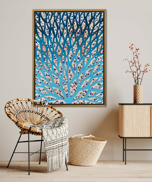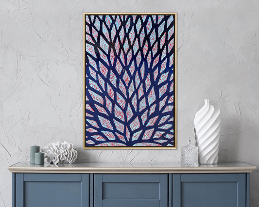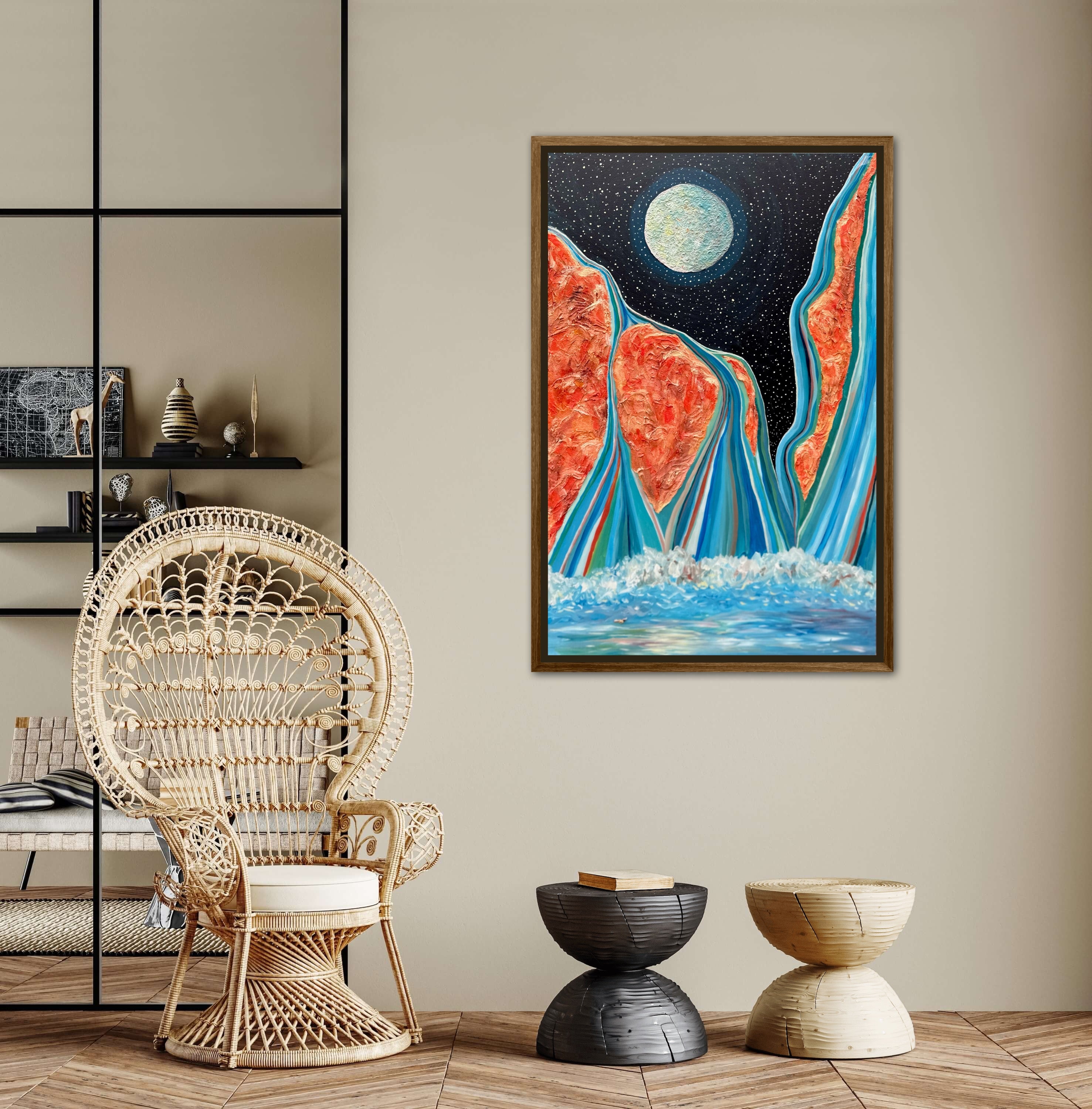 The Path of the Blue Flame - 24x36in Mixed Media; Sand, Acrylic & Resin on Canvas Framed