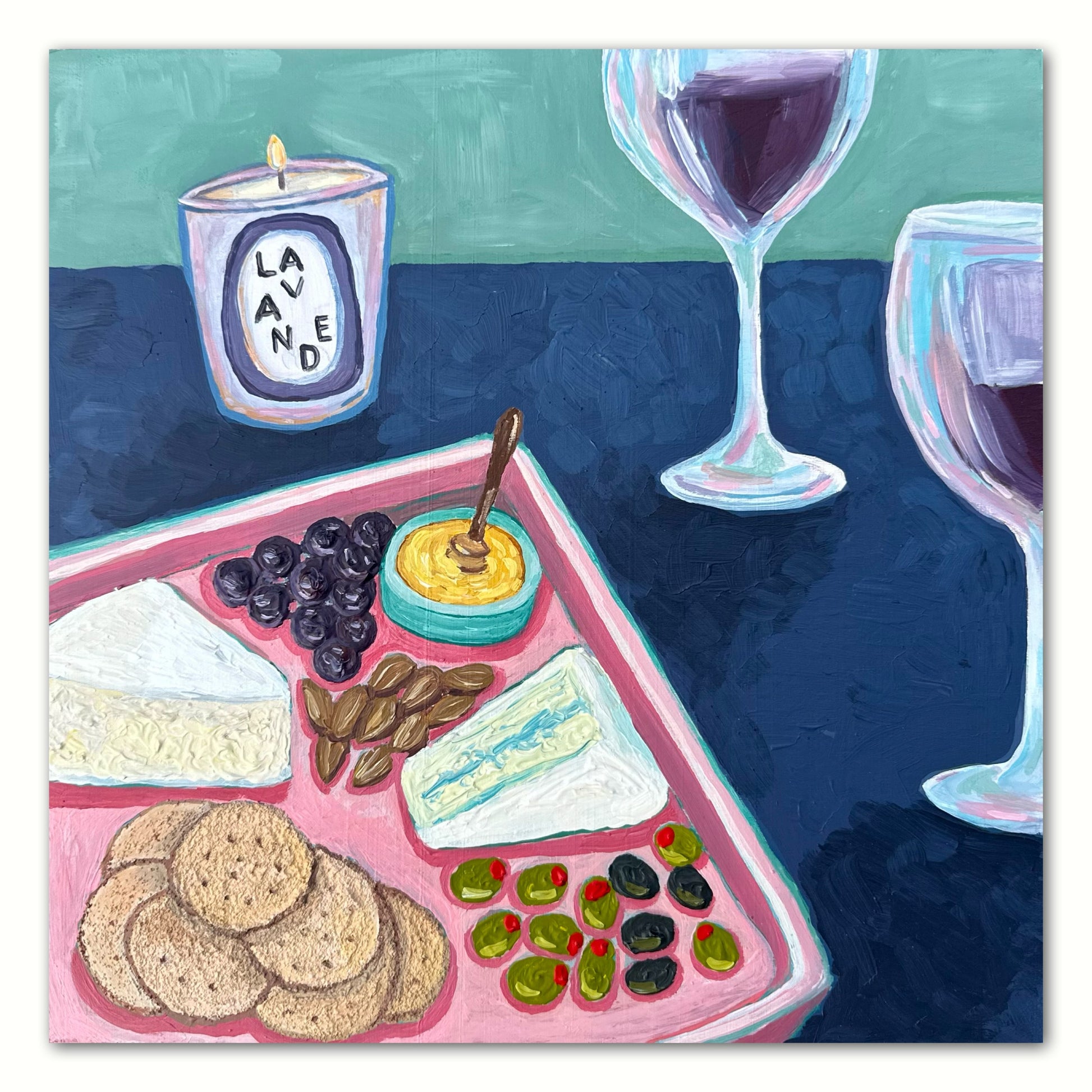 Little Luxuries Collection: Vino et Fromage - 12x12in Original Art