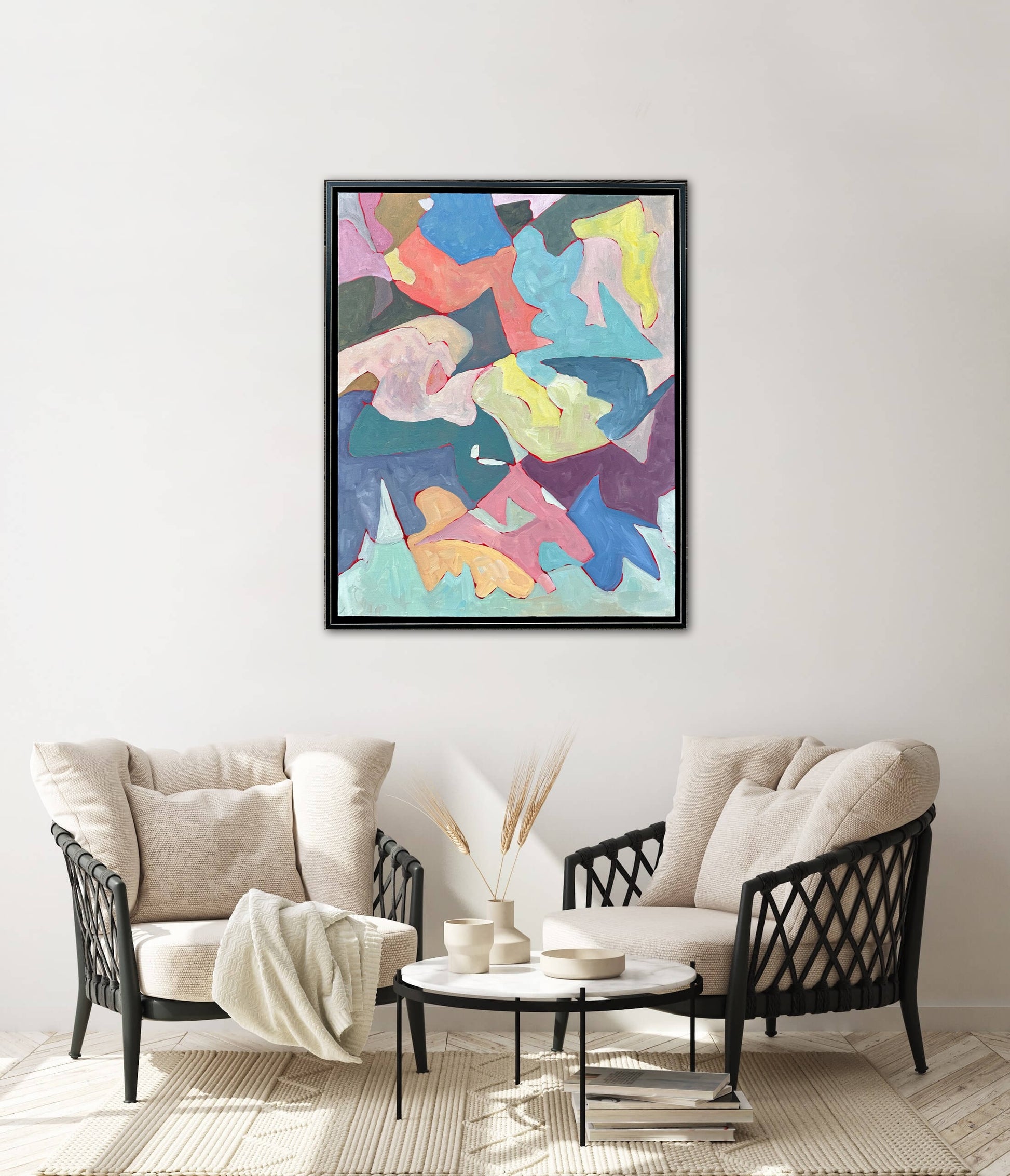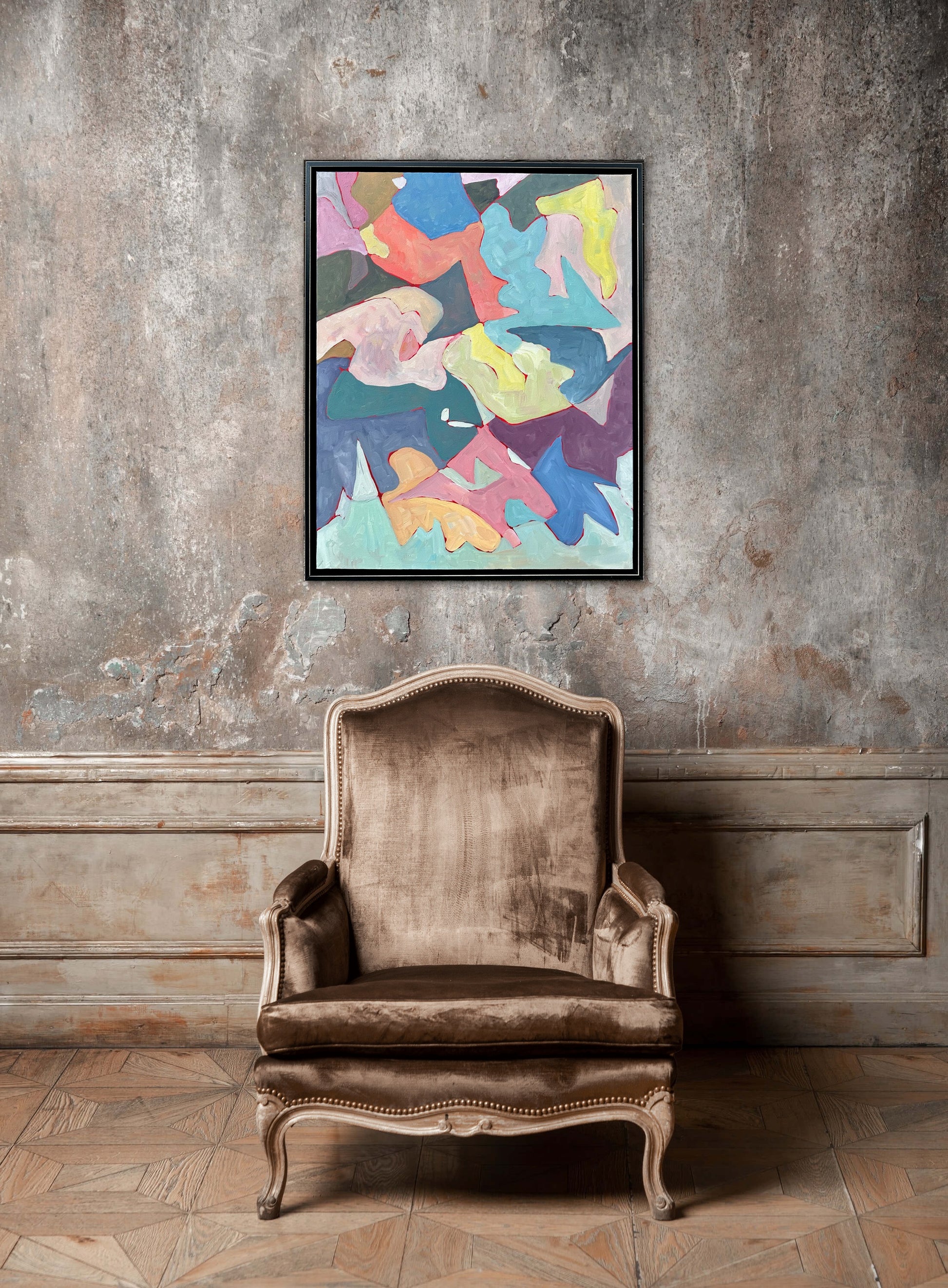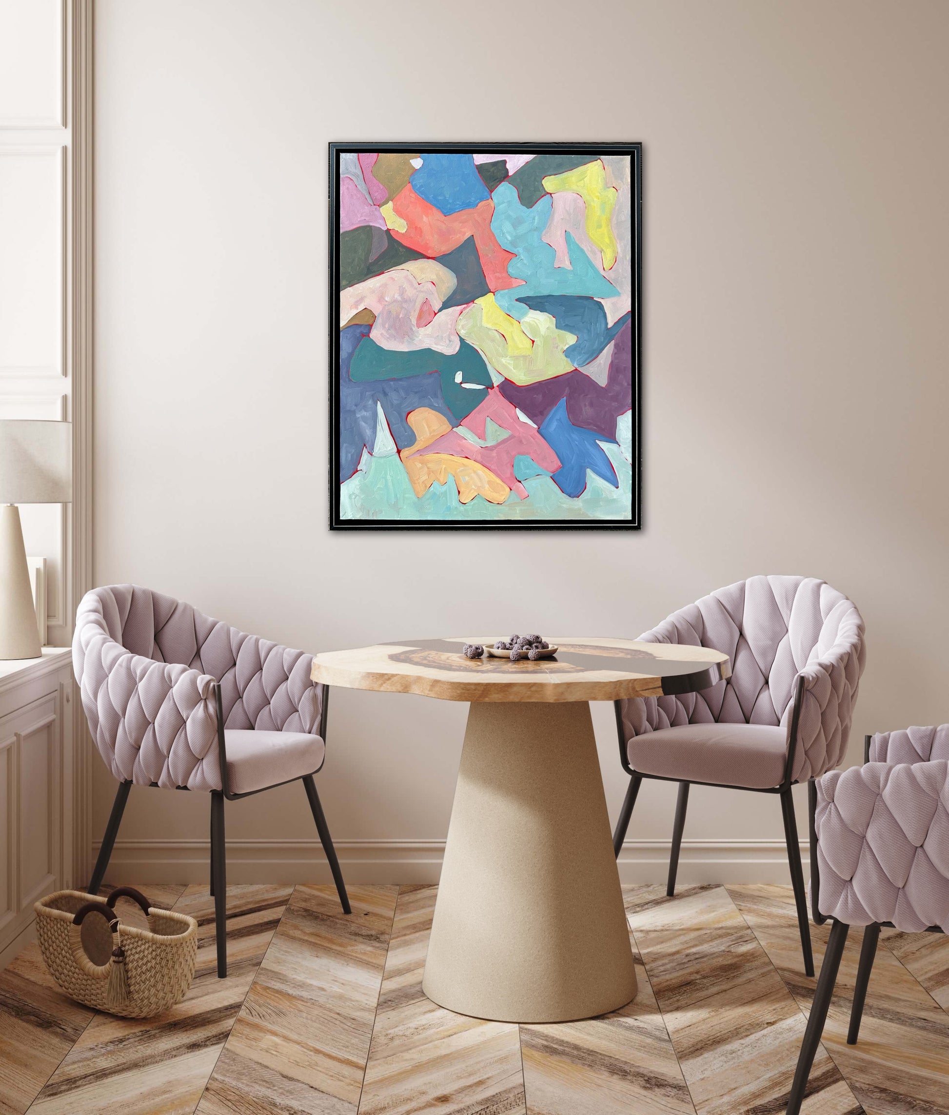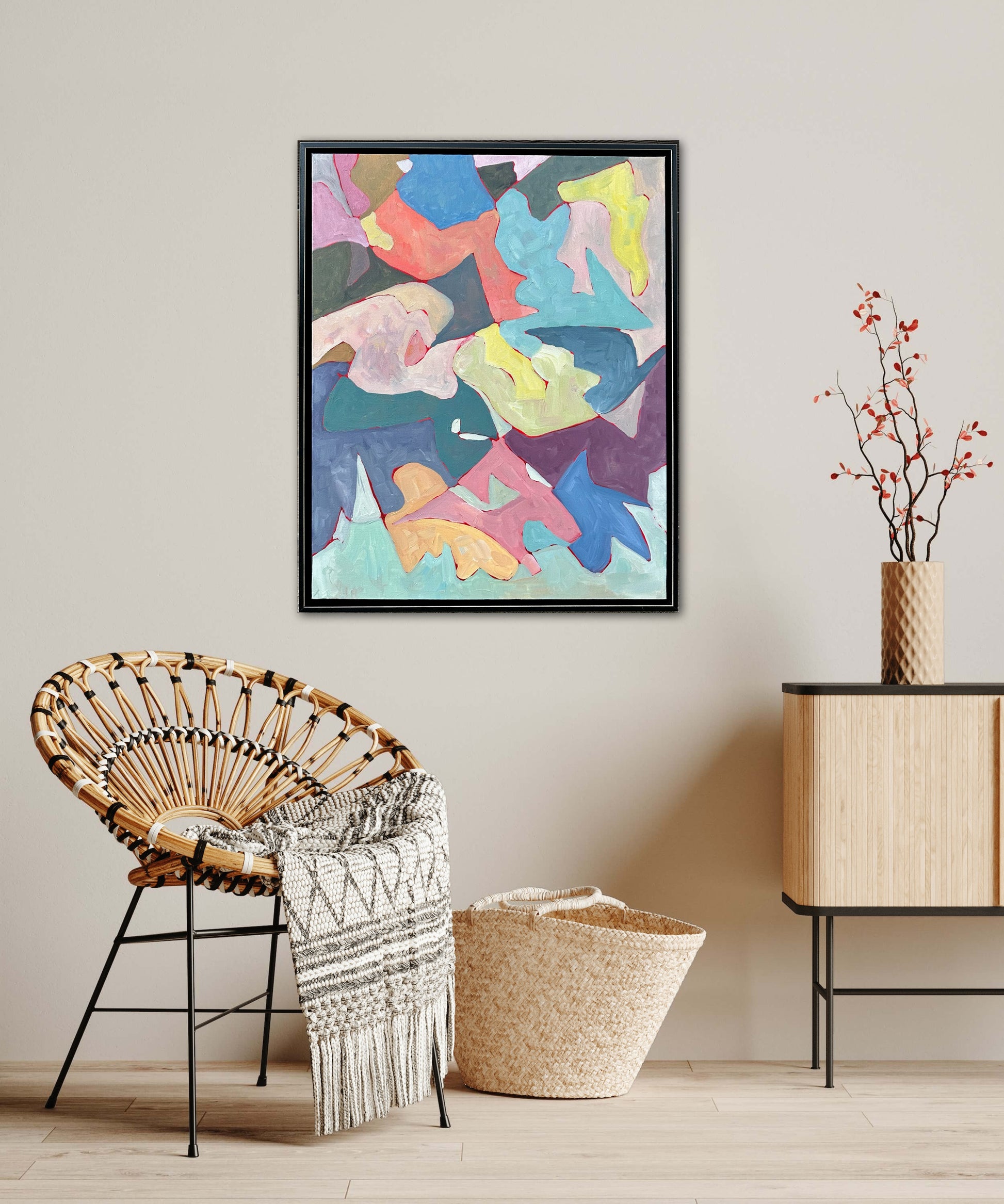 This intuitive abstract painting is inspired by Richard Schwartz’s work on IFS & Parts Theory within Psychology. This piece examines the dynamic and complex parts that uniquely make up of each of us, how they show up, and interplay.