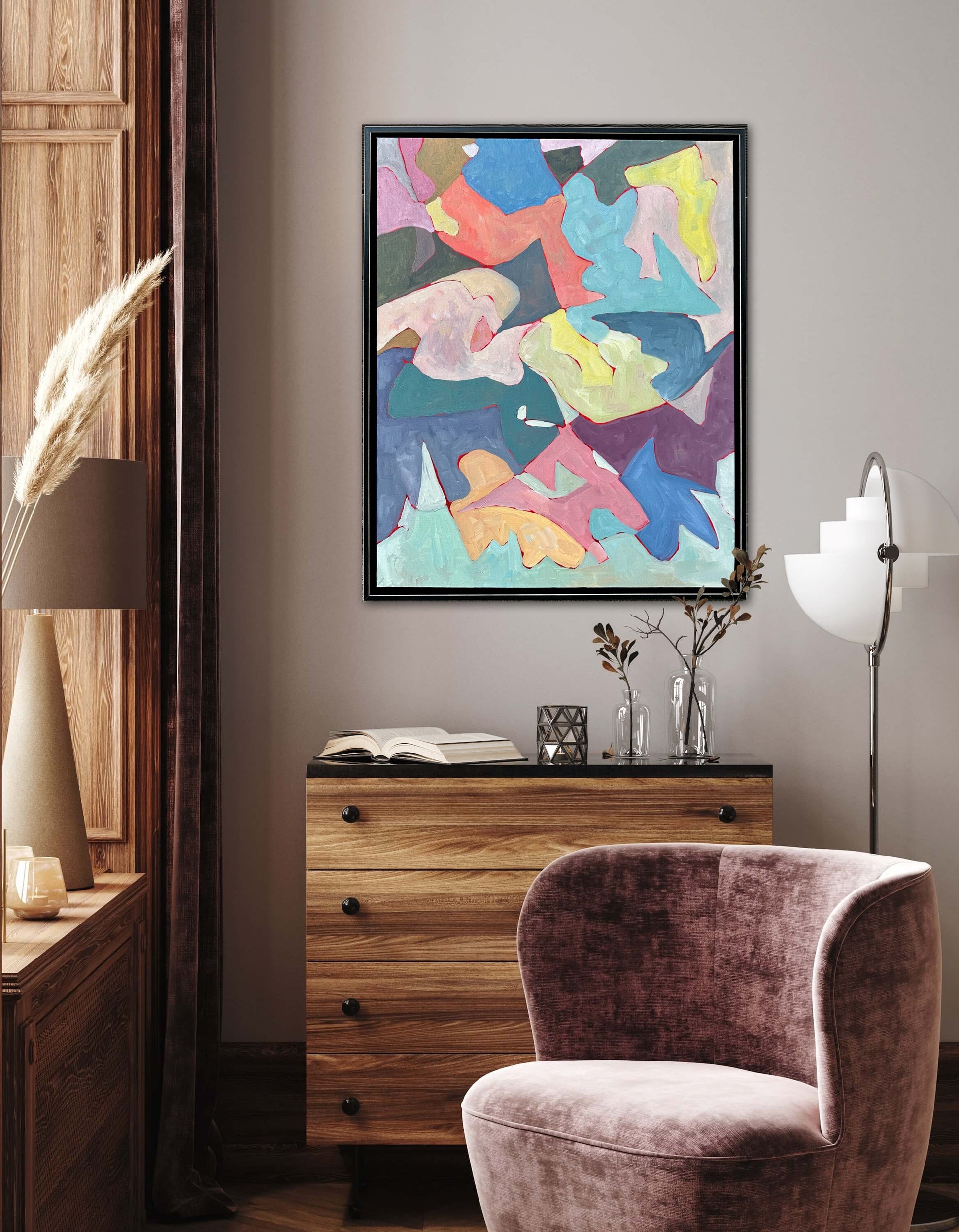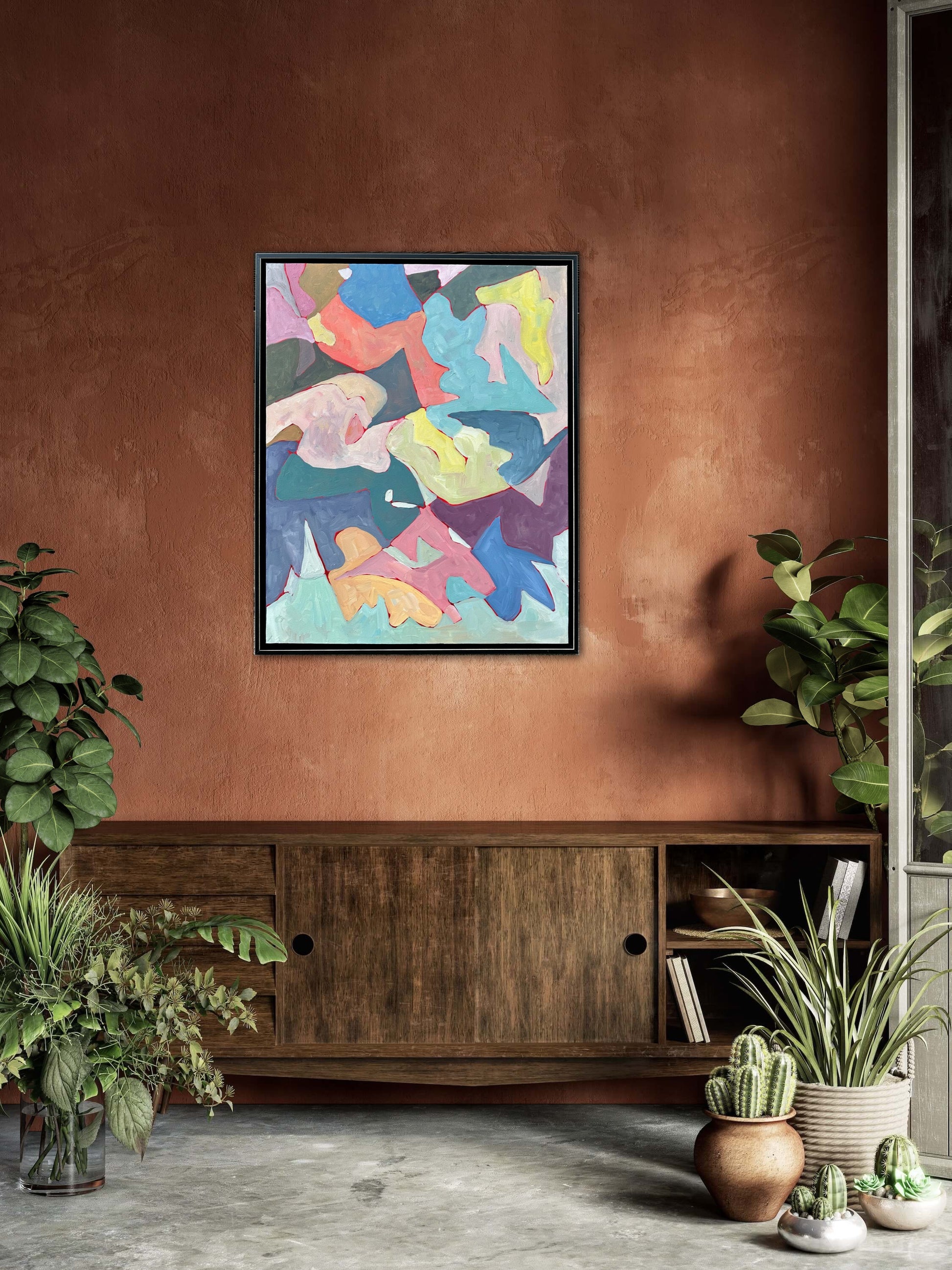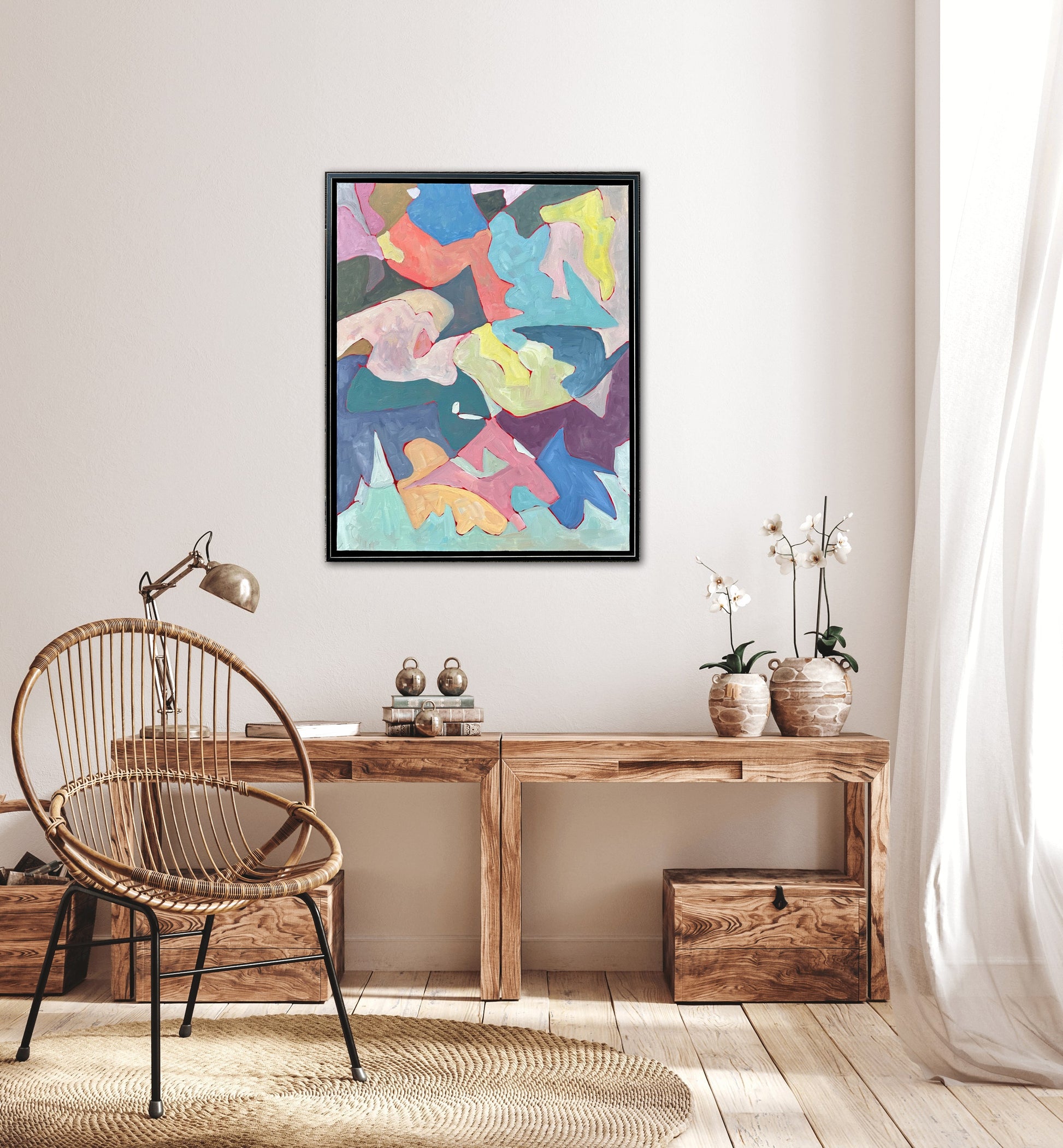 This intuitive abstract painting is inspired by Richard Schwartz’s work on IFS & Parts Theory within Psychology. This piece examines the dynamic and complex parts that uniquely make up of each of us, how they show up, and interplay.