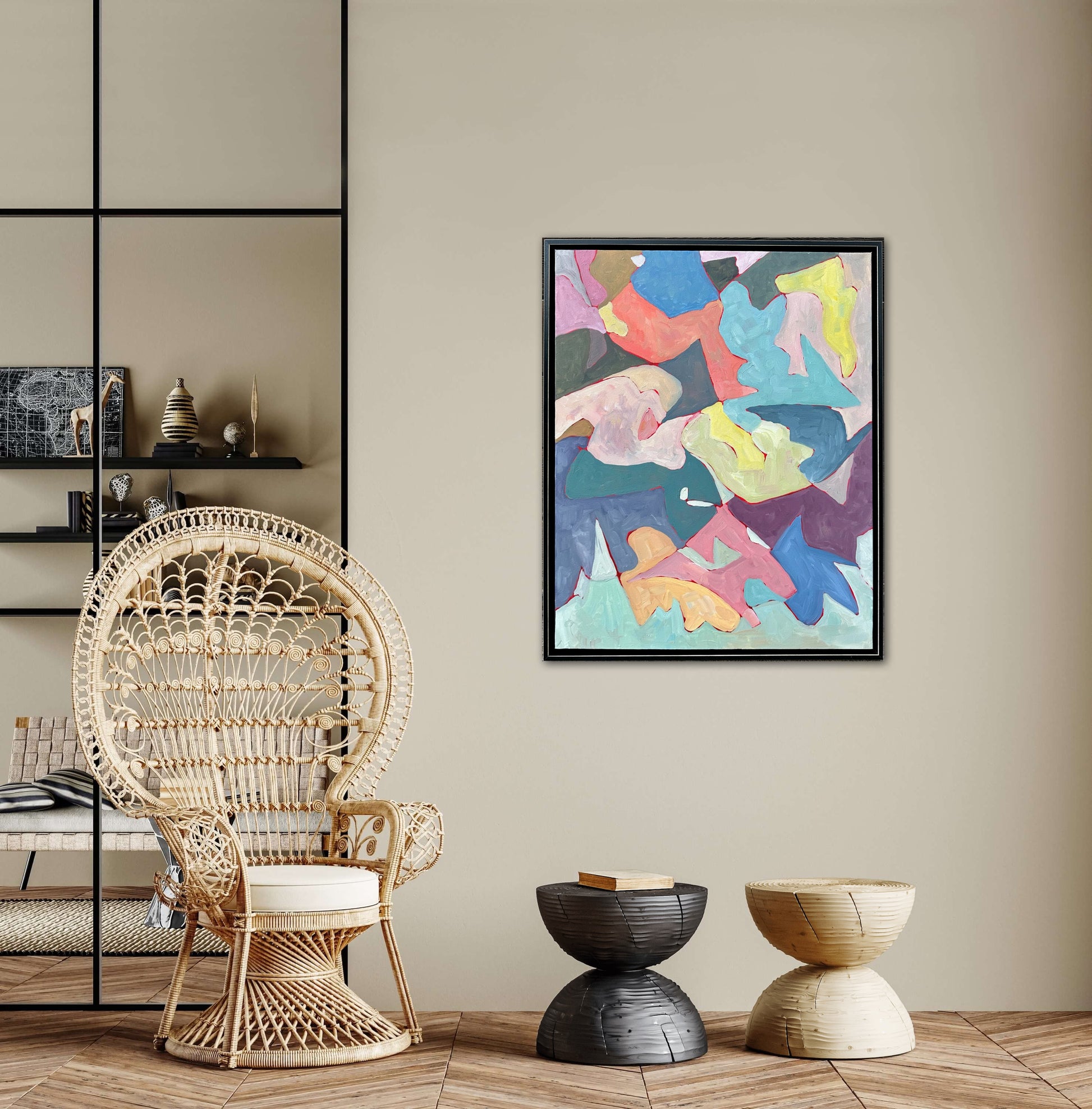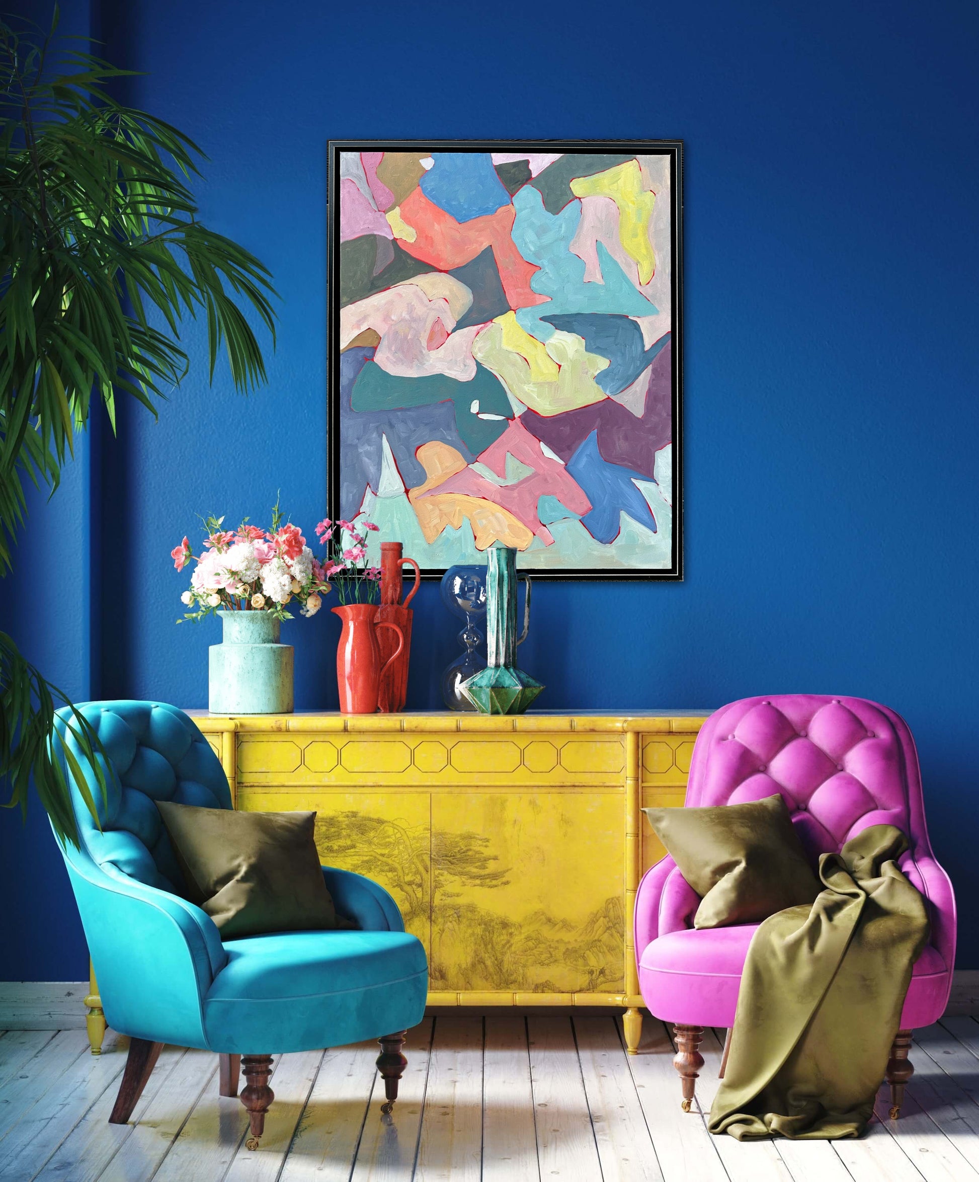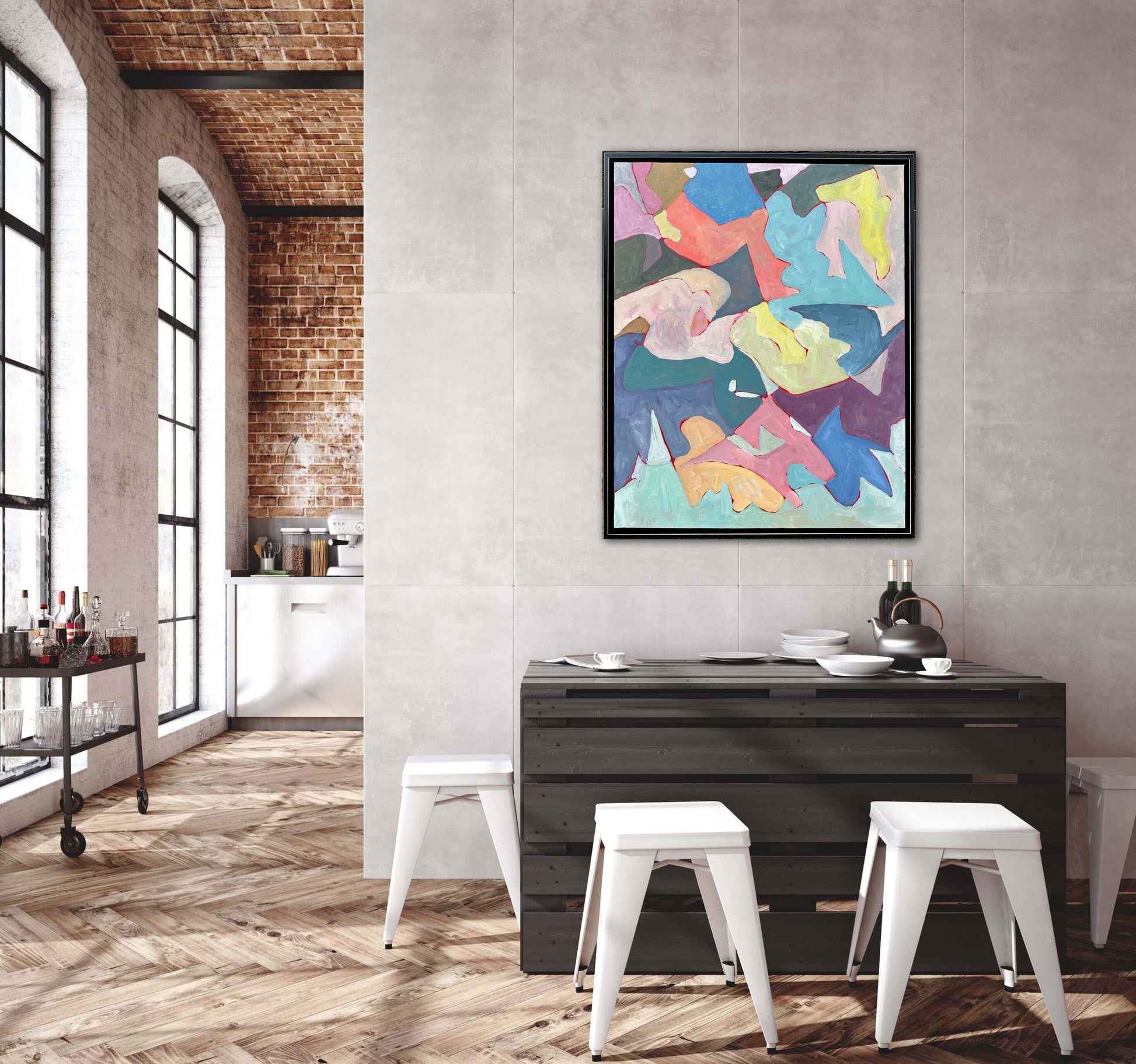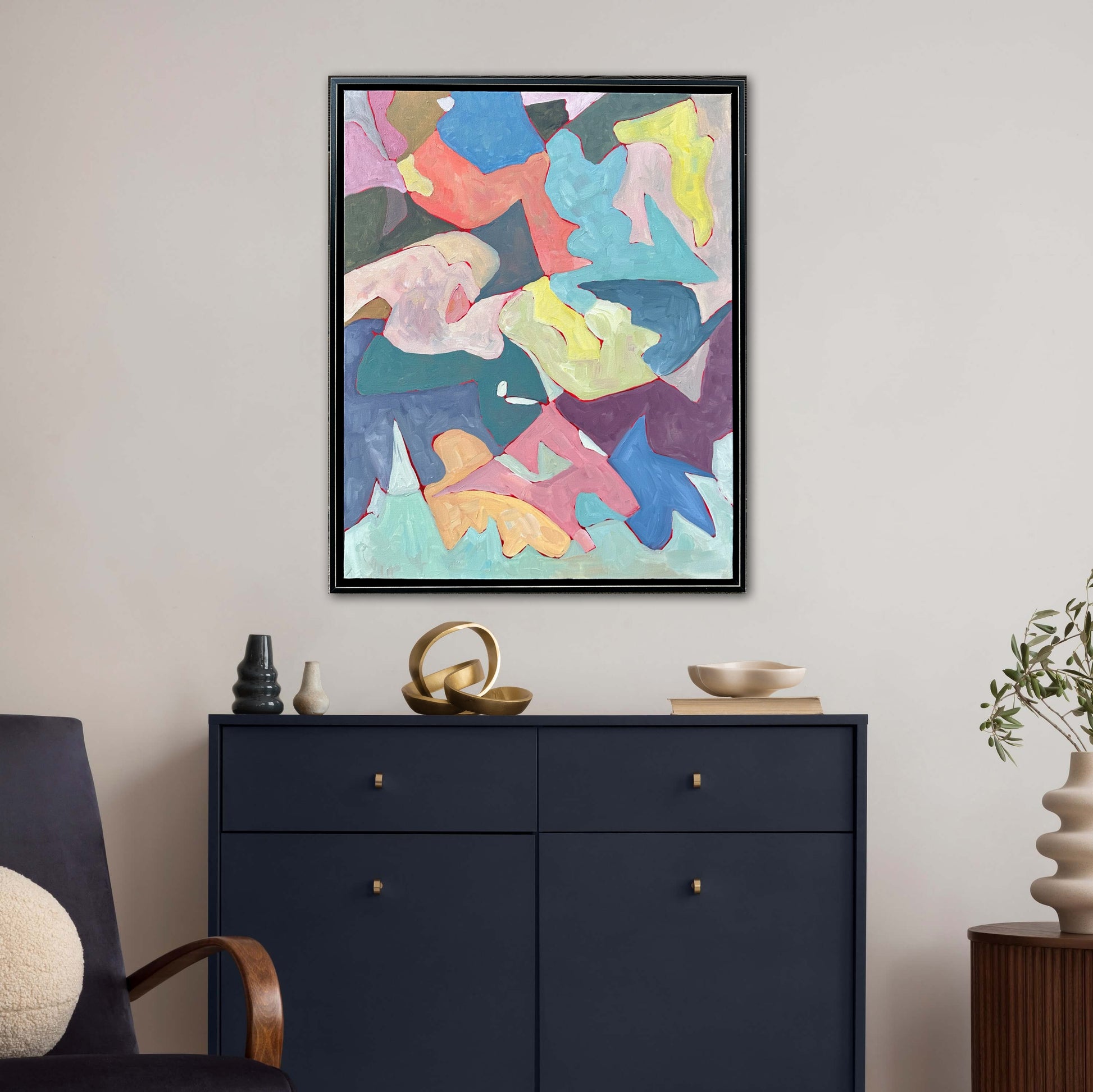 This intuitive abstract painting is inspired by Richard Schwartz’s work on IFS & Parts Theory within Psychology. This piece examines the dynamic and complex parts that uniquely make up of each of us, how they show up, and interplay.