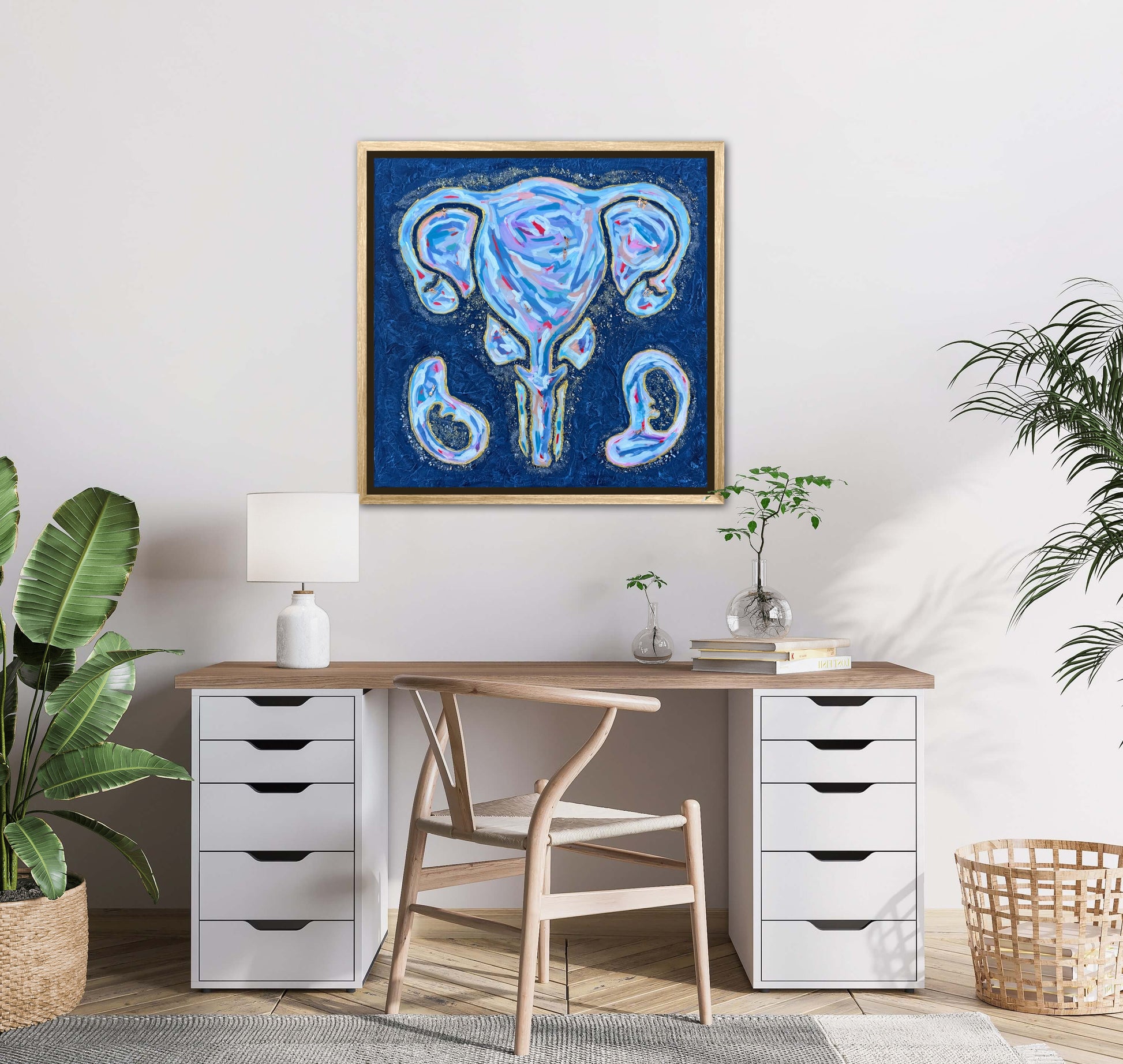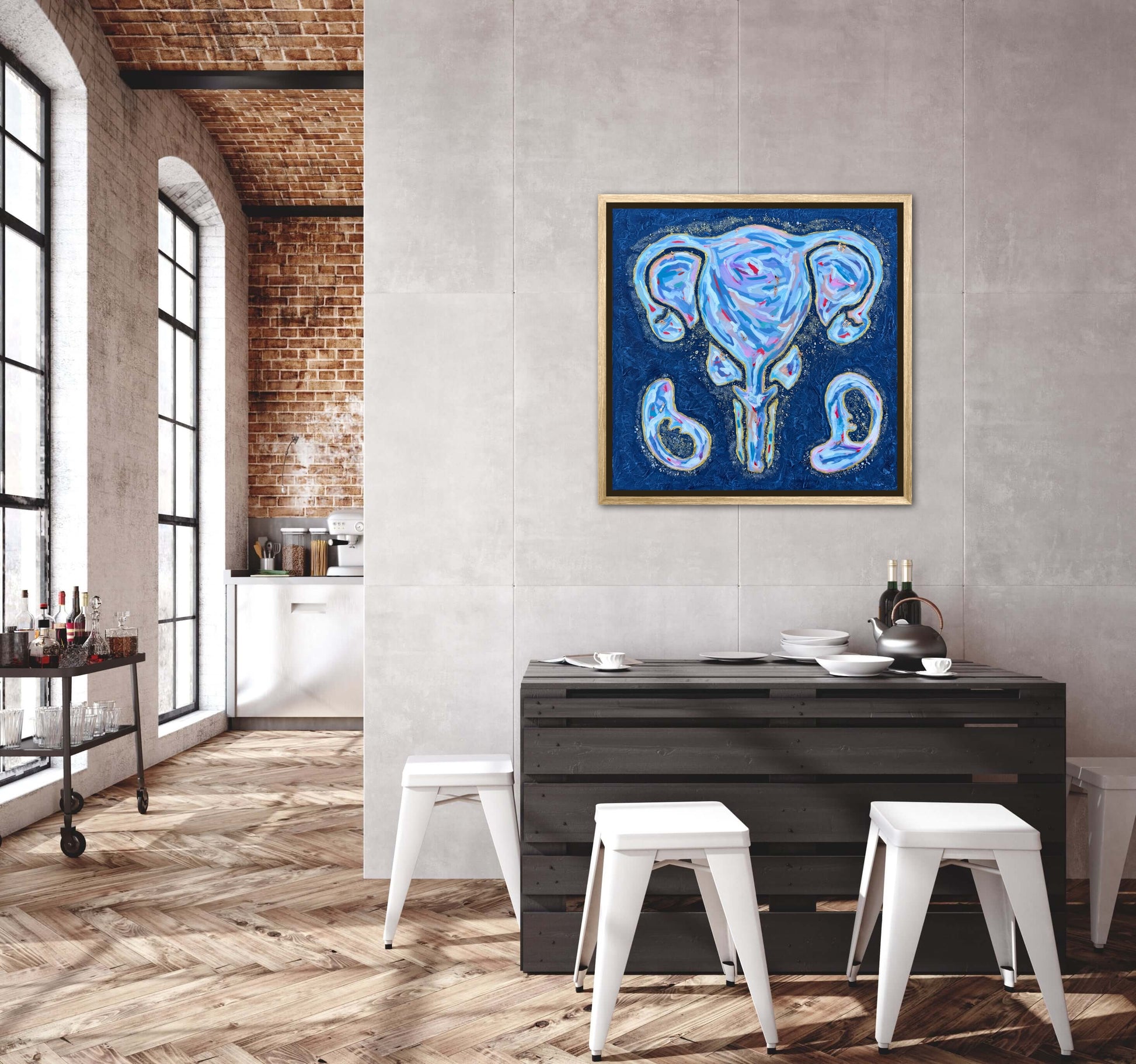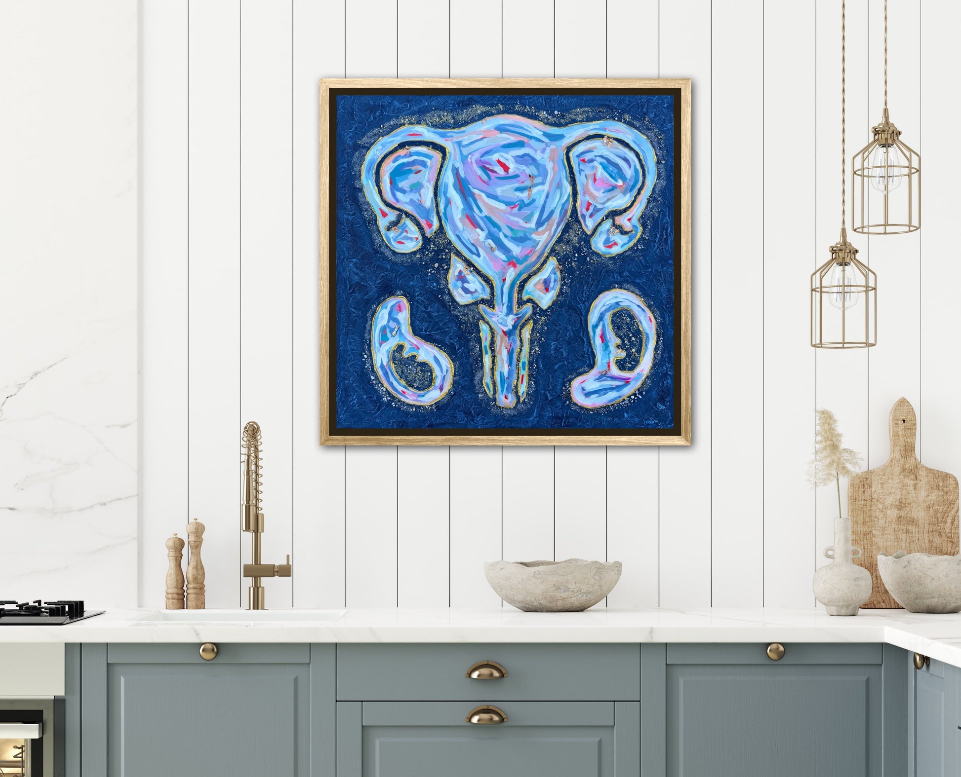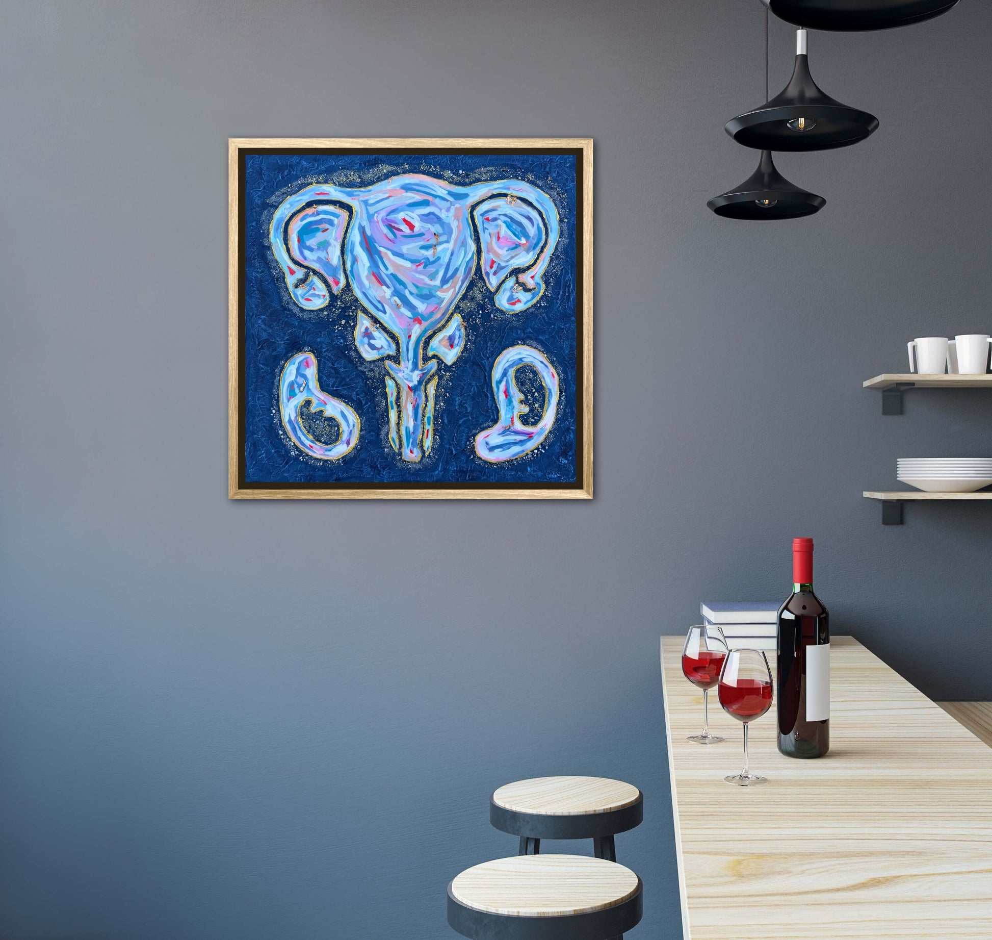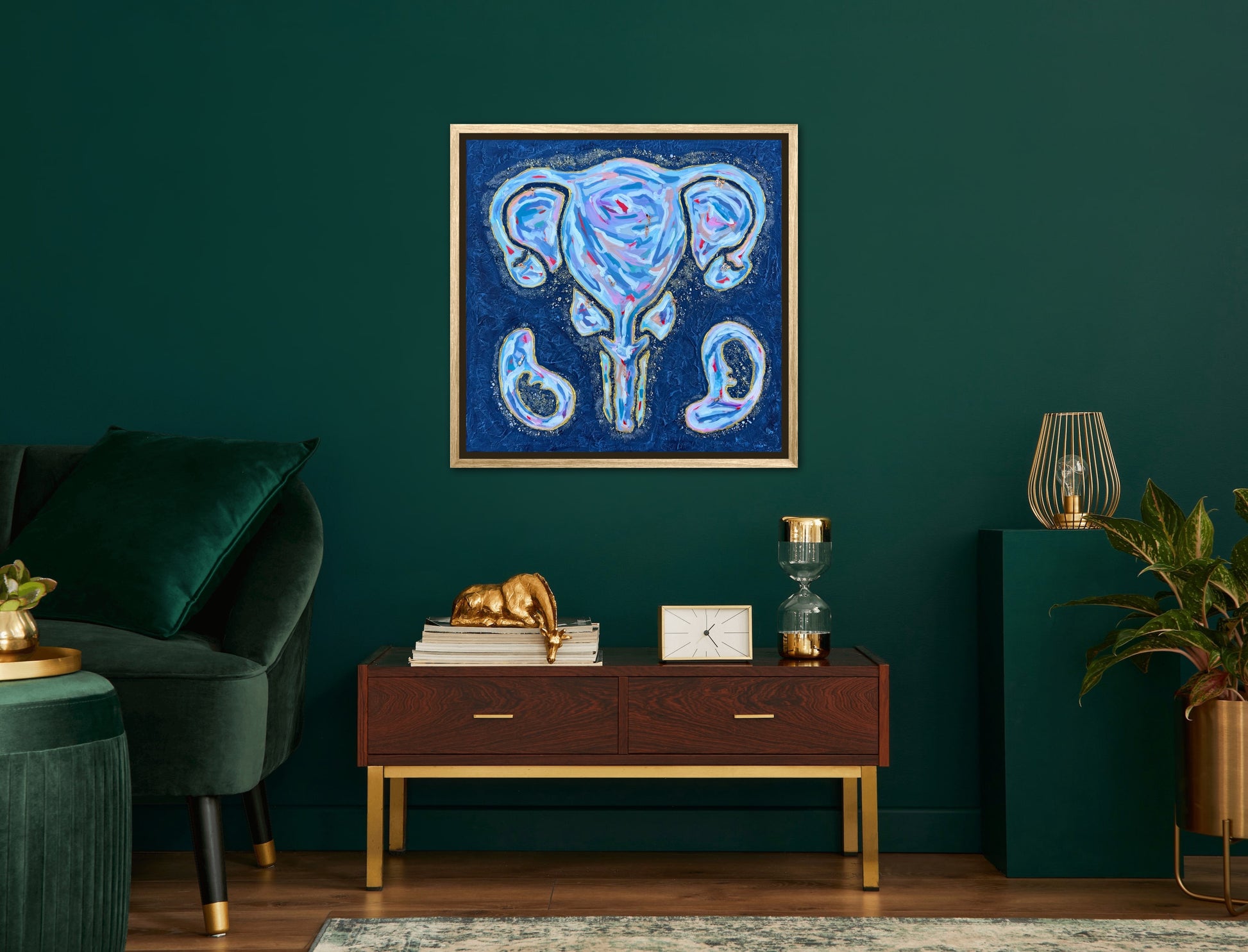 This piece was created with sand, resin, crushed minerals, acrylic paint, and miniature swimmers suspended in a luminous, womb-like landscape. A place that feels like both a return to origin and an escape. A resort before consciousness. A remembering before choice.