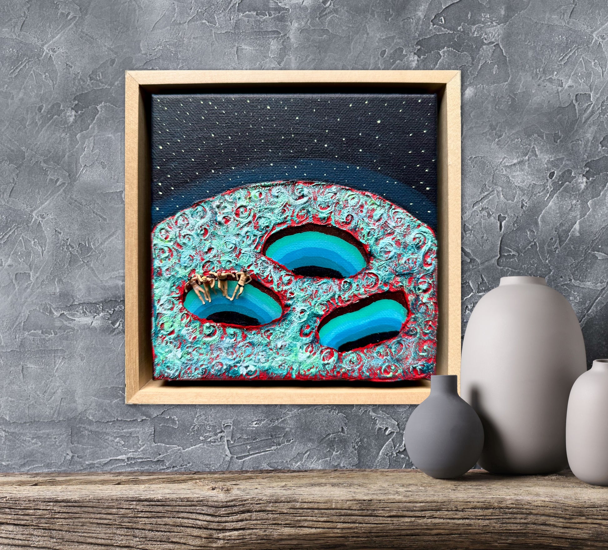 This piece is a mini version of my larger 24x24in piece titled “Vacation on Mars” featured in Colossal Magazine, The Other Art Fair Dallas, and Saatchi Art publications in April & May 2025.